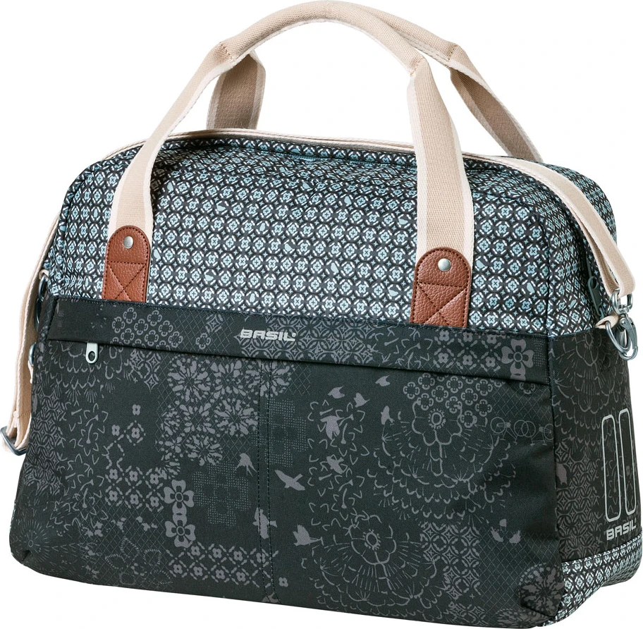 De Basil Boheme is een enkele fiets(schouder)tas. Deze fraai vormgegeven fietsschoudertas is gemaakt van waterafstotend polyester. De tas heeft een totale inhoud van 18 liter, waardoor je hem perfect kunt inzetten als boodschappentas. De Boheme Carry All bag heeft een groot binnenvak en een voorvak. De tas blinkt uit dankzij de kunstlederen details, de afneembare schouderriem en de praktische draaghengsels.